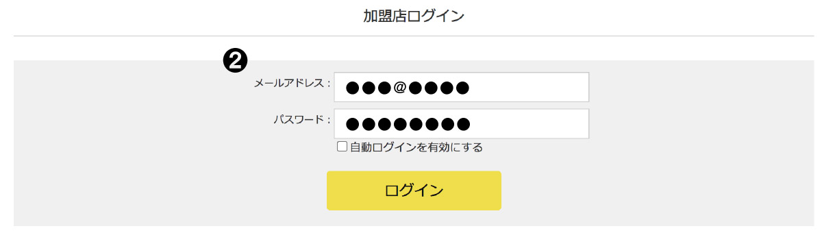 - ご登録のメールアドレスとパスワードでログインしてください。