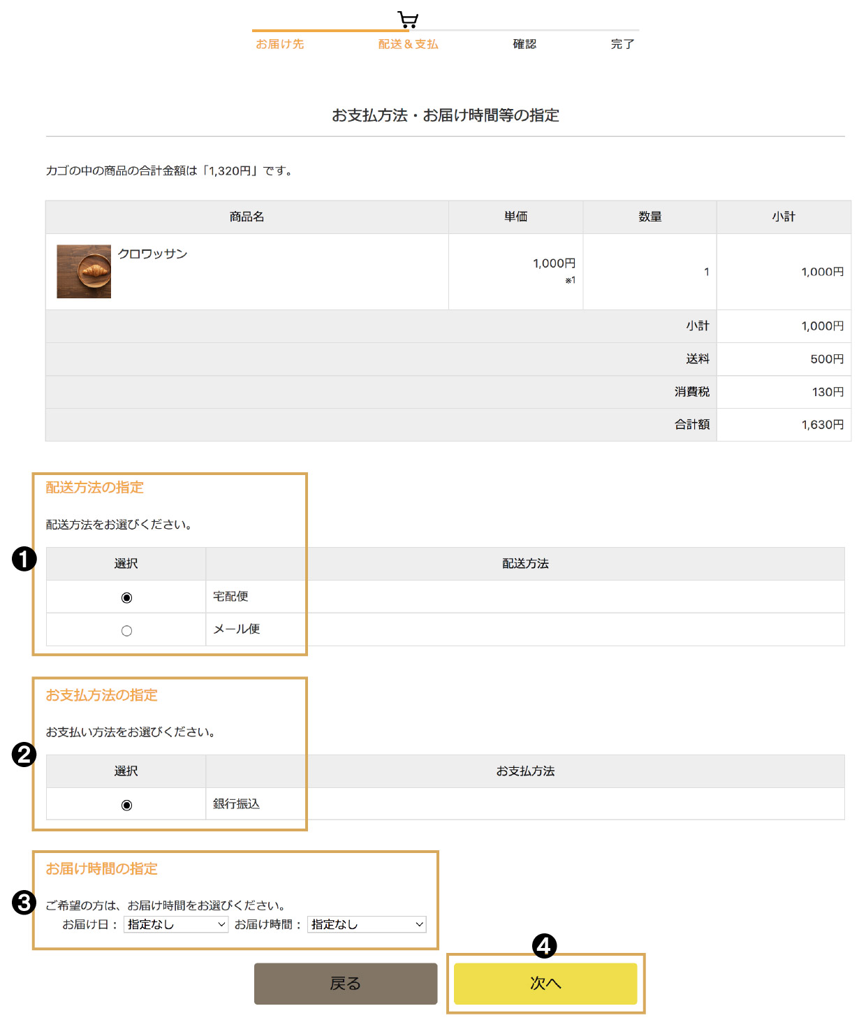 お支払方法・お届け時間等の指定