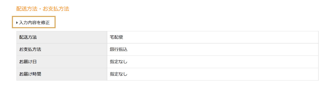 変更がある場合は、各項目の「▶入力内容を修正」から修正が可能です。 - ご注文完了