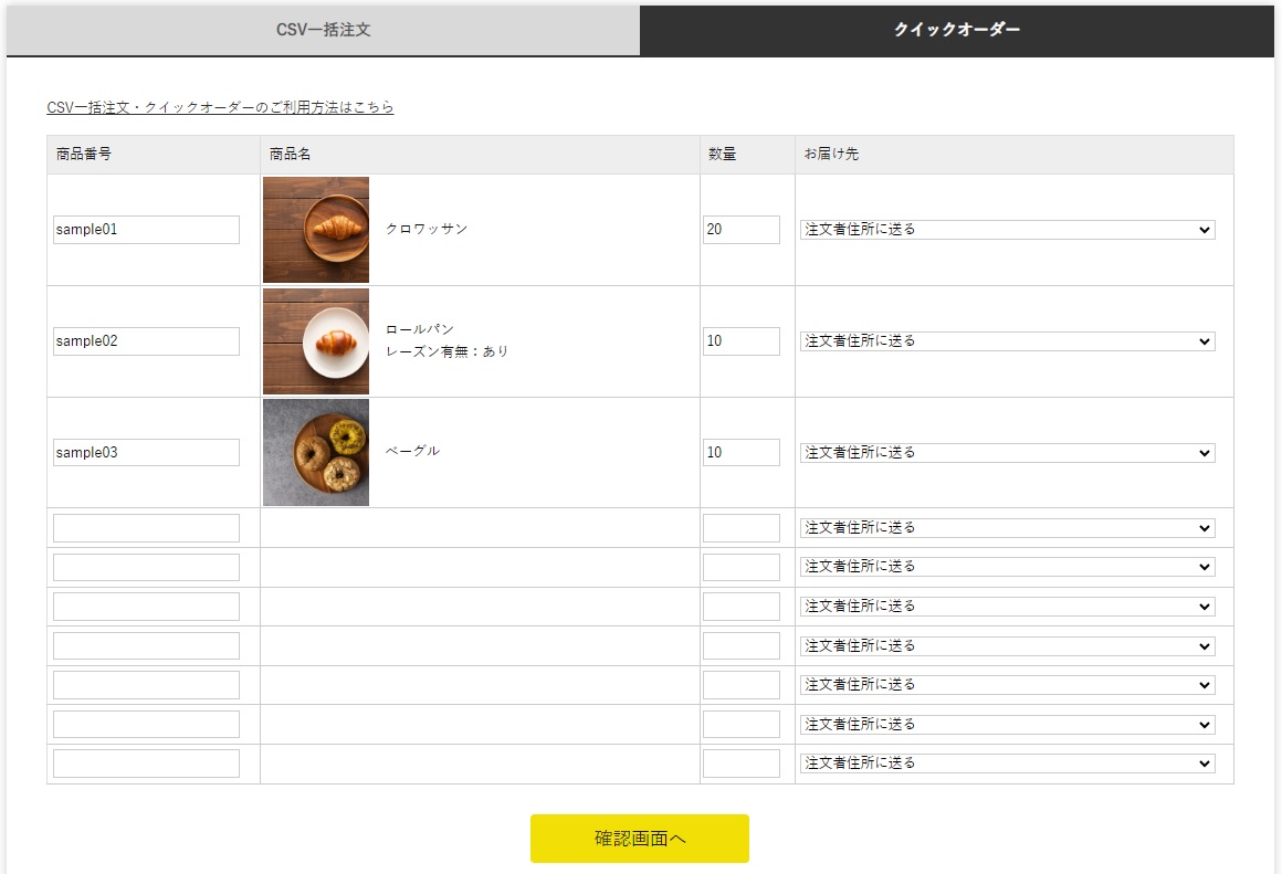 クイックオーダーで購入する場合【CSV一括注文】